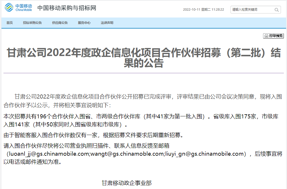 近日,中國移動通信集團甘肅有限公司公布了甘肅公司2022年度政企信息化項目合作伙伴招募(第二批)入圍名單。作為國家雙高新技術企業,邁道科技憑借在智慧建造、智慧安全、智慧交通等方面的專業技術實力,成功入選,開啟雙方聯合打造數字化服務生態體系的新篇章。