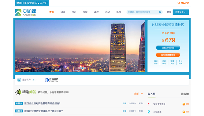 邁道科技推出“安知課——中國HSE專業知識交流社區”網站,旨在幫助所有從事健康(H)、安全(S)、環境(E)等領域的政府機構、行業協會、企業、科研院所的專業人士及高校師生,通過分享國內外HSE領域先進的創新技術、應用實踐及管理理念,在互動交流和經驗探討中,打破行業信息閉塞,持續學習,拓展思路,提升自我的中國HSE專業知識交流社區平臺。