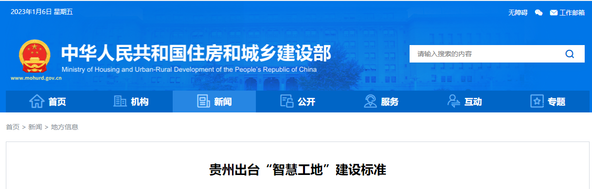 為大力推進“智慧工地”建設,以大數據智能化推動建筑業轉型升級、提質增效,促進建筑業持續健康發展,近日,貴州省住房和城鄉建設廳組織研究制定并印發了《貴州省“智慧工地”建設分級及設備安裝指導標準(試行 1.0)》(以下簡稱《指導標準》),要求進一步做好貴州省建筑業智慧管理服務信息平臺省、市(州)、縣(區)三級統一建設工作。